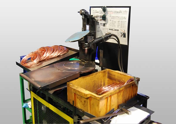 この設備は、ロー付け材である銅をリング状に加工した切断面同士を接合する設備です。