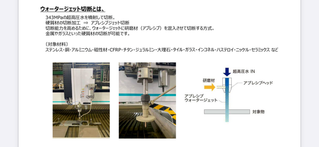 3⃣ウォータージェット切断加工(研磨材使用)