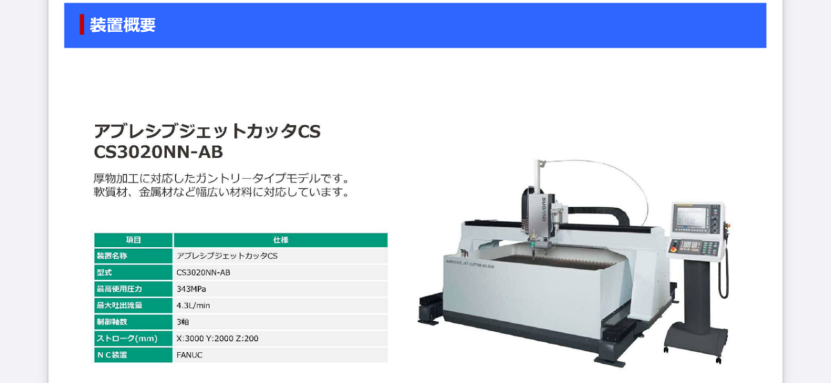 切断能力を高めるために、ウォータージェットに 研磨材(アブレシブ)を混入させて切断する方式。