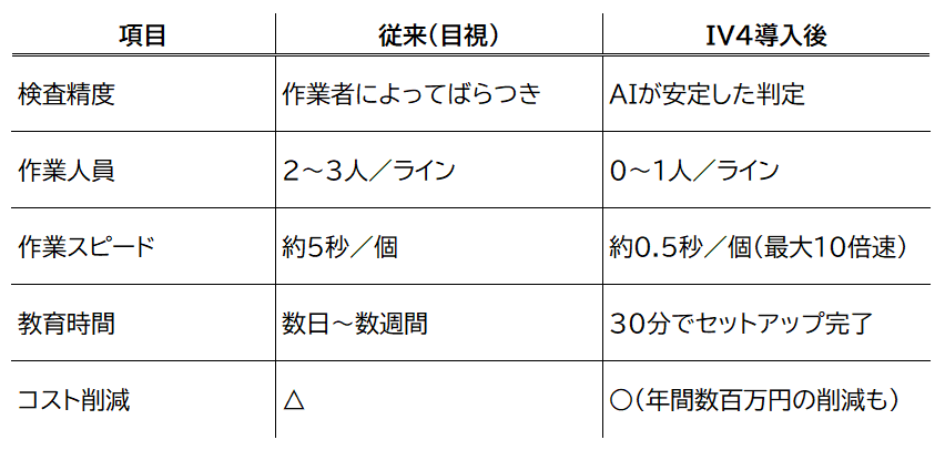IV4が“人の目”を超える判断力で、製品の品質を守ります。